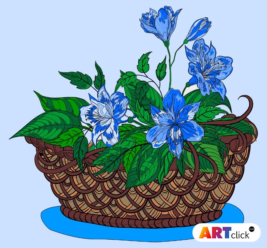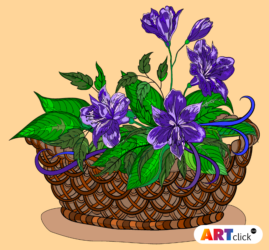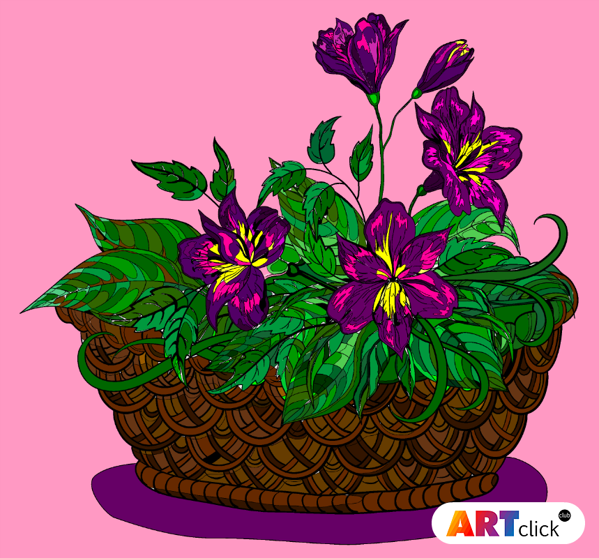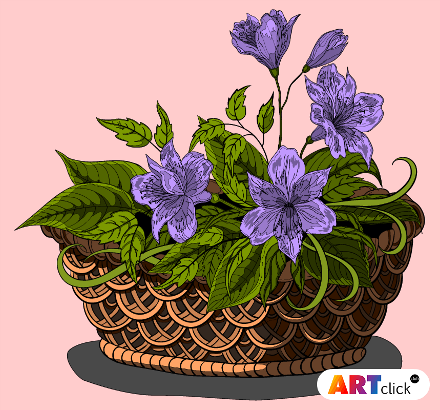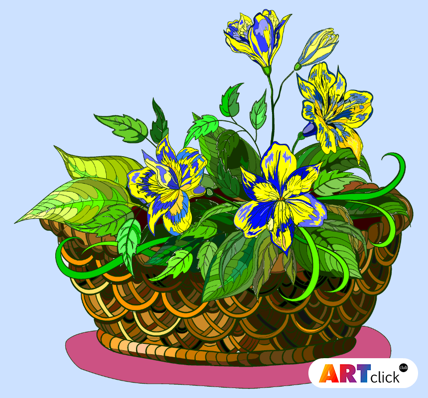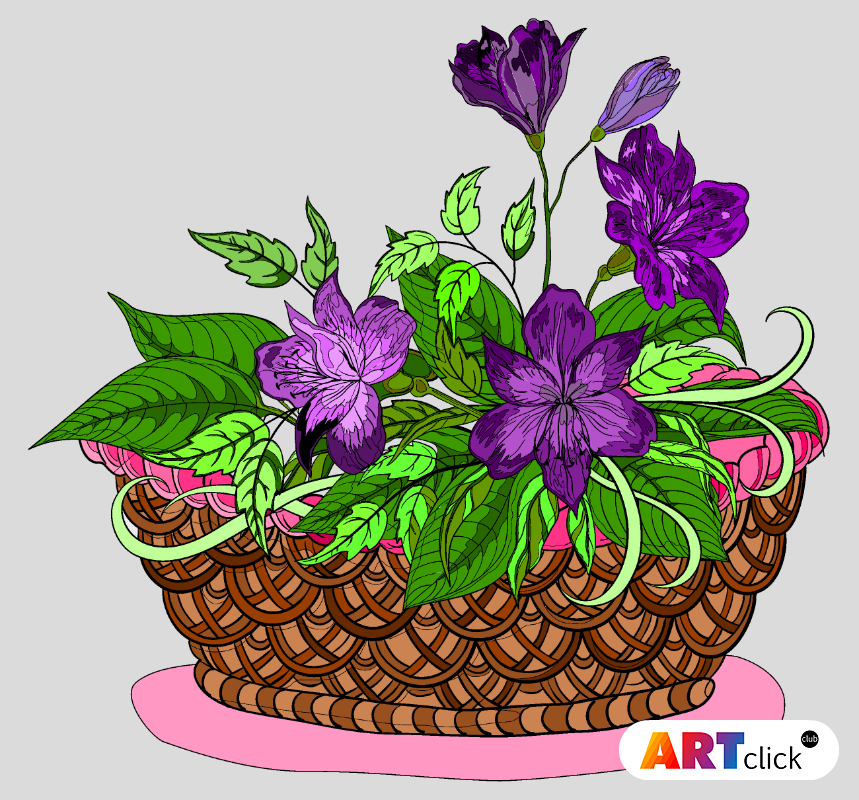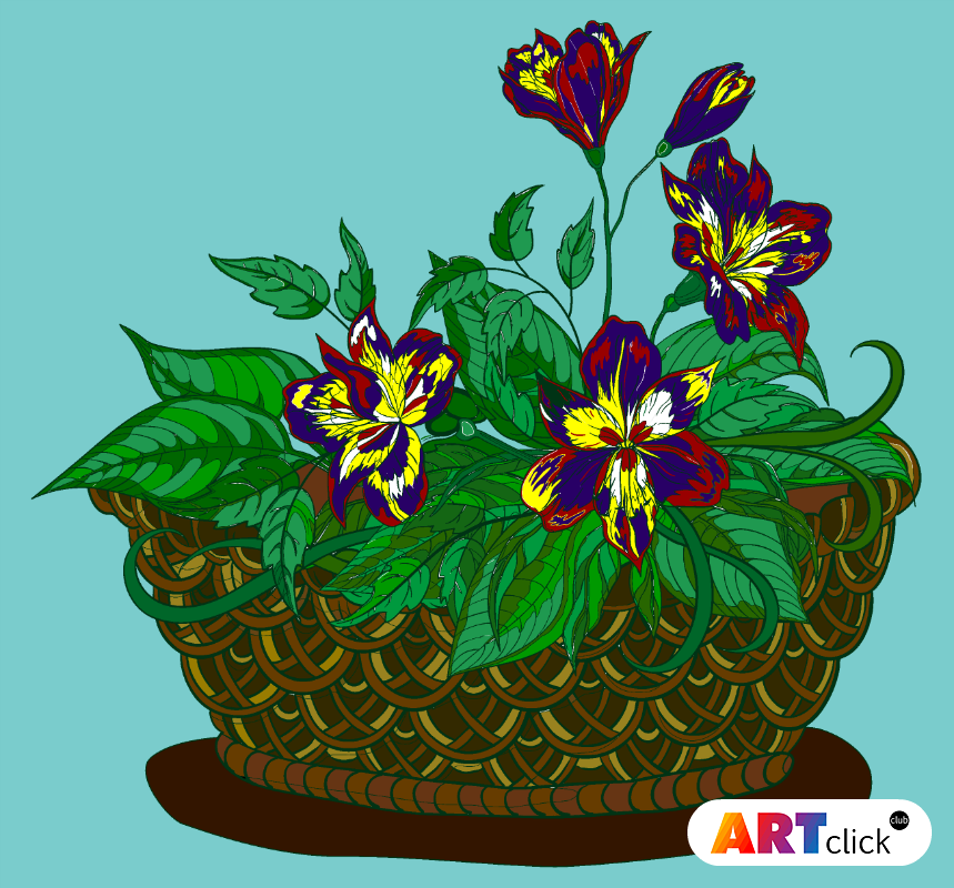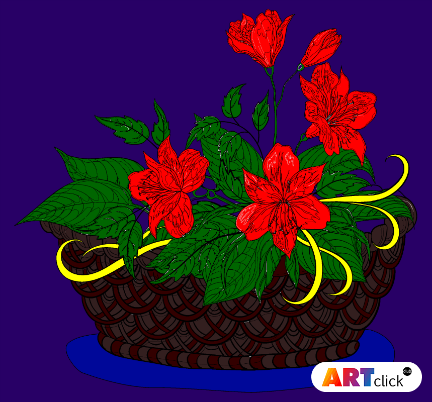 раскраска онлайн Корзина с цветами